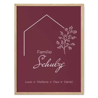 Personalisierbares Poster Familie Haus - weinrot |