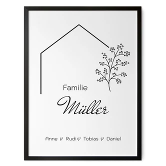 Personalisierbares Poster Familie Haus - weiß |