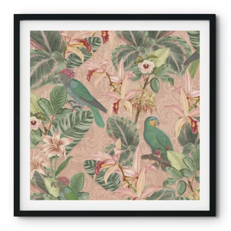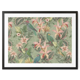 Botanik Poster Dschungel mit Papageien Rosa - B... |