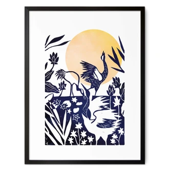 Poster Goed Blauw - Linolschnitt Kranich |