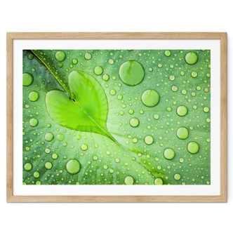 Poster Foto - Herz aus Wassertropfen auf grünem... |