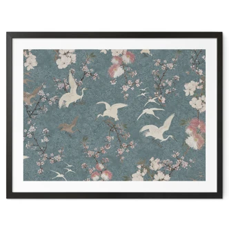 Poster Kraniche im Kirschblüten-Rausch Blau - B... |