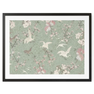 Poster Kraniche im Kirschblüten-Rausch Grün - B... |