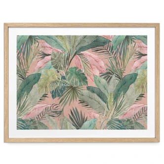 Botanik-Poster Tropenblätter im Dschungel Rosa ... |