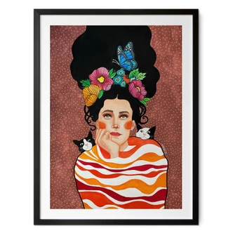 Poster Frau mit Blumenkrone und Katzen - Hülya |