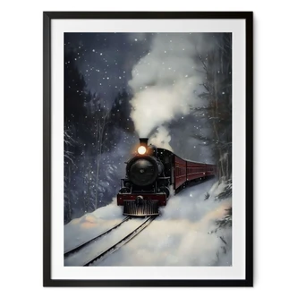 Poster Winter - Dampflok im verschneiten Wald -... |