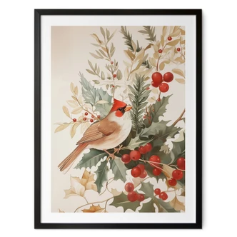 Poster Wintermotiv - Kardinalsvogel mit Beerenz... |
