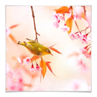 Poster Vogelgezwitscher in der Kirschblüte - qu... |